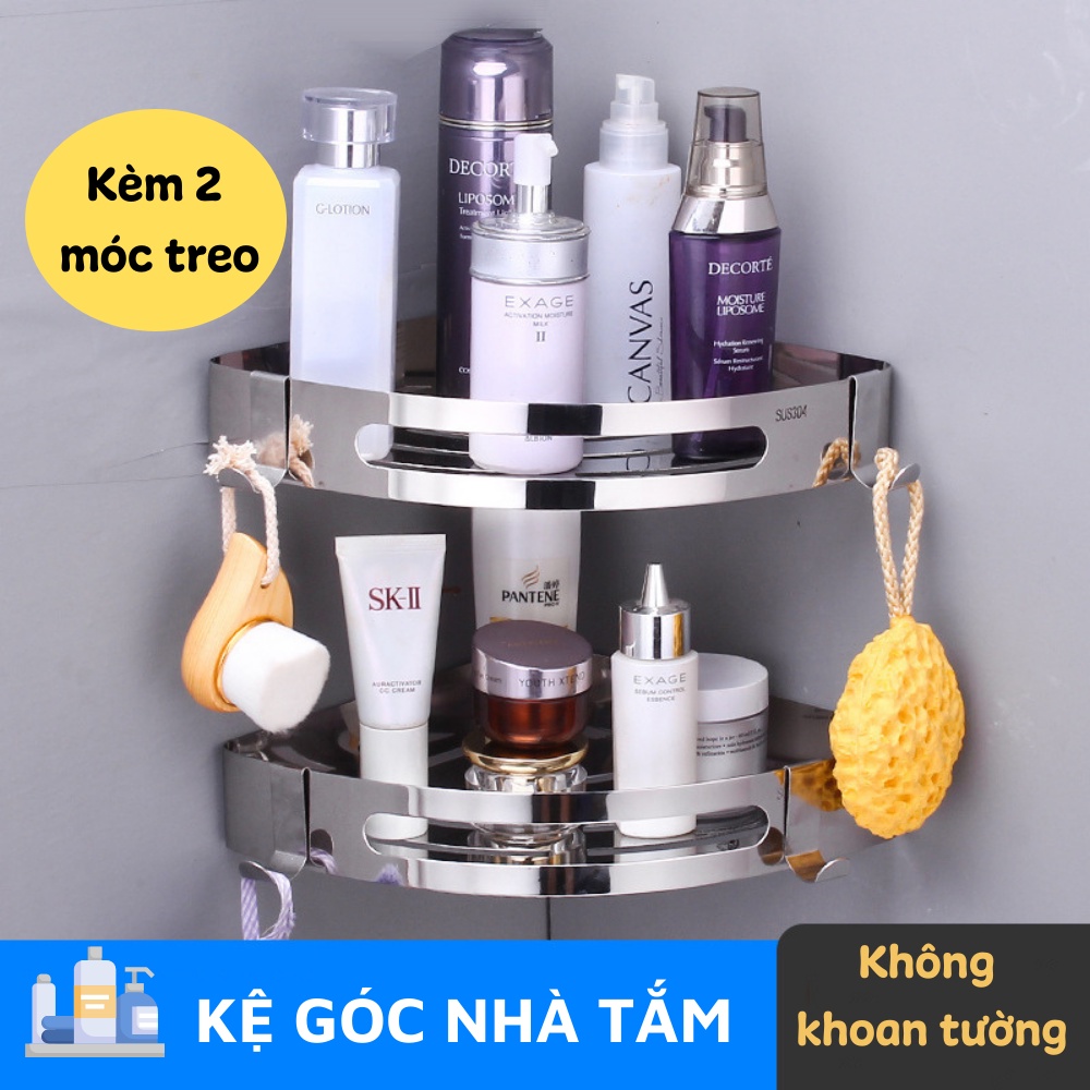 Kệ Nhà Tắm, Kệ Góc Nhà Tắm Inox Dán Tường Không Cần Khoan Đục THANH XUÂN 98