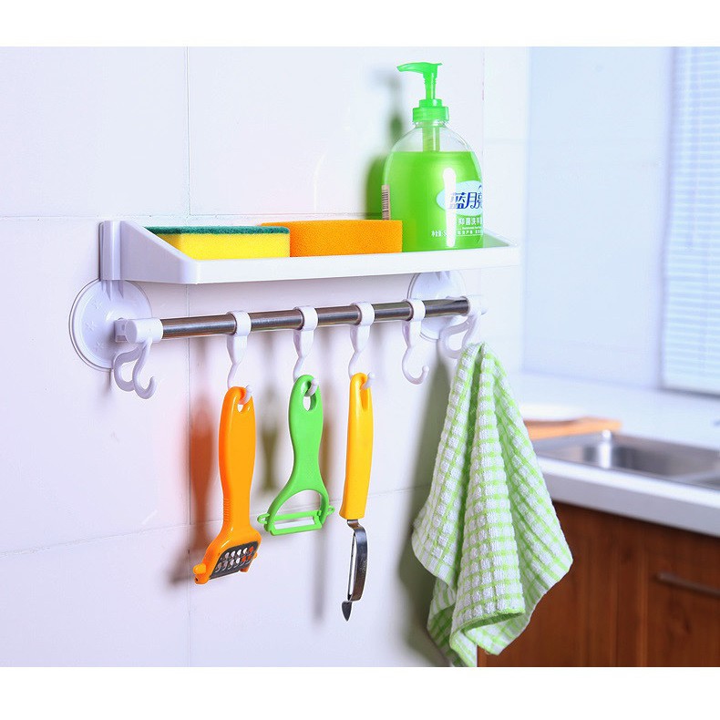 Kệ nhà tắm kèm thanh treo 6 móc - giao màu ngẫu nhiên