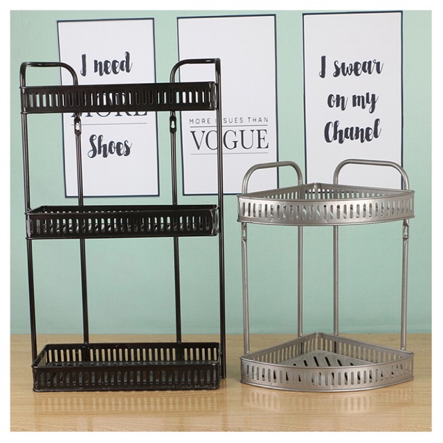 Kệ được làm bằng chất liệu inox cao cấp kèm 1 lớp sơn đen trống rỉ các bạn yên tâm khi để ở phòng bếp và phòng tắm nhé.