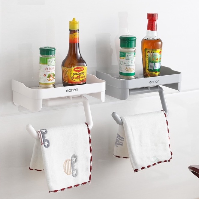 Giới thiệu Kệ Nhà Tắm Nhà Bếp Thông Minh OENON , Kệ Để Đồ Phòng Tắm Kèm Giá Treo Khăn Lắp Đặt Dán Tường Cao Cấp