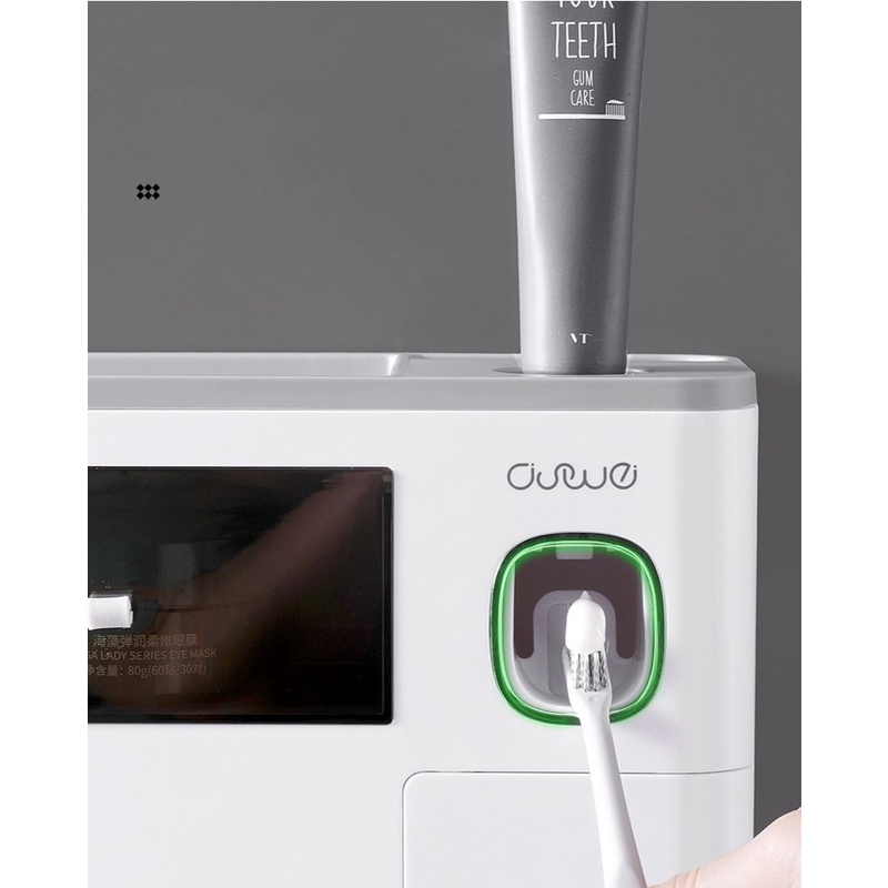 Kệ đồ dùng tích hợp cả kệ để bàn chải - cốc - máy nhả kem đánh răng tự động...rất chi là tiện mà nhìn sang hẳn cái phòng tắm lên lun