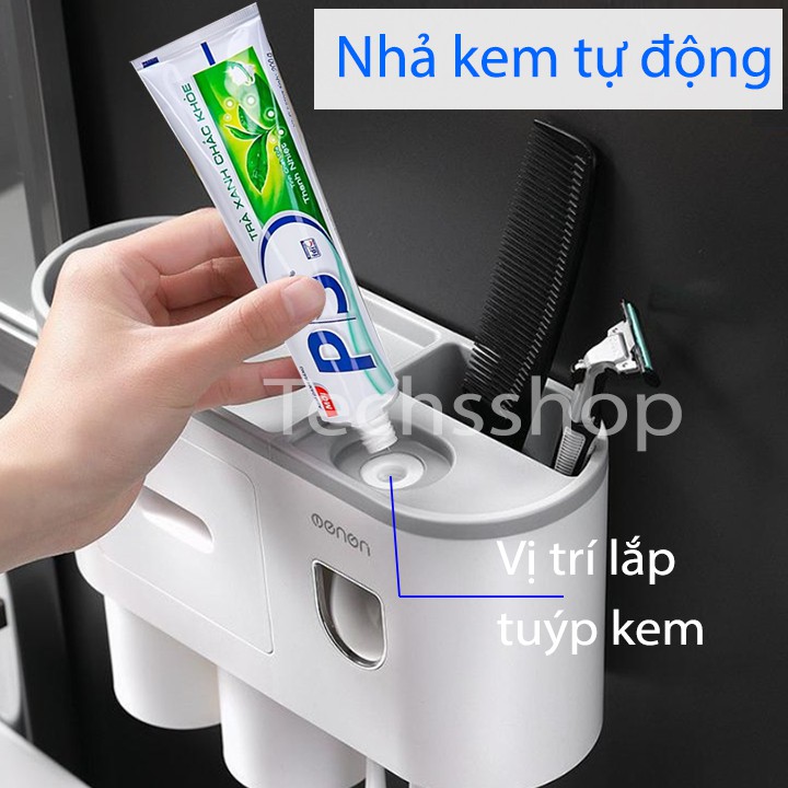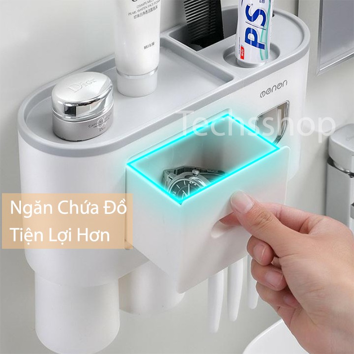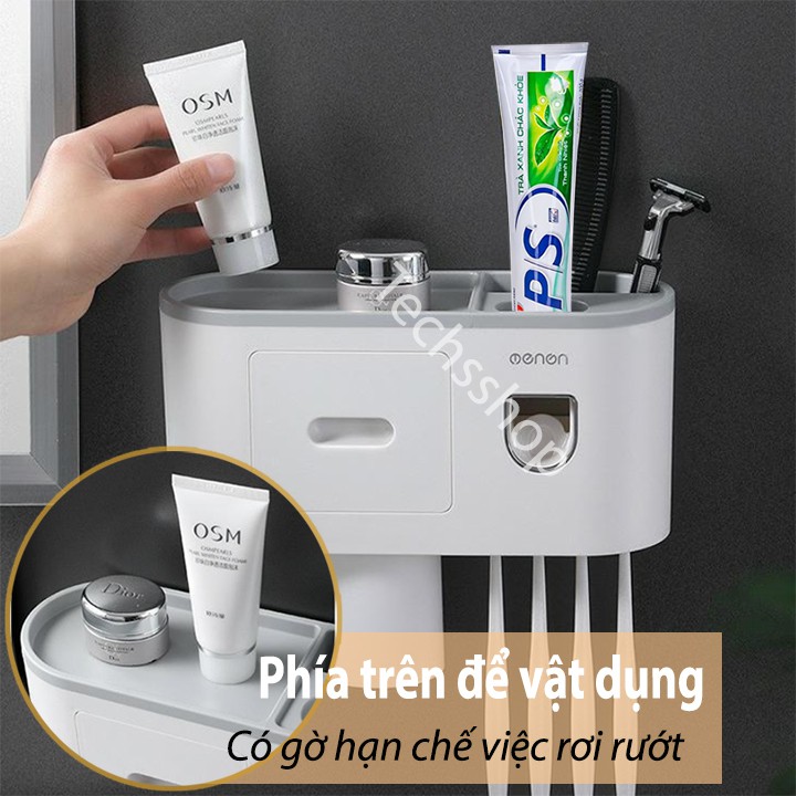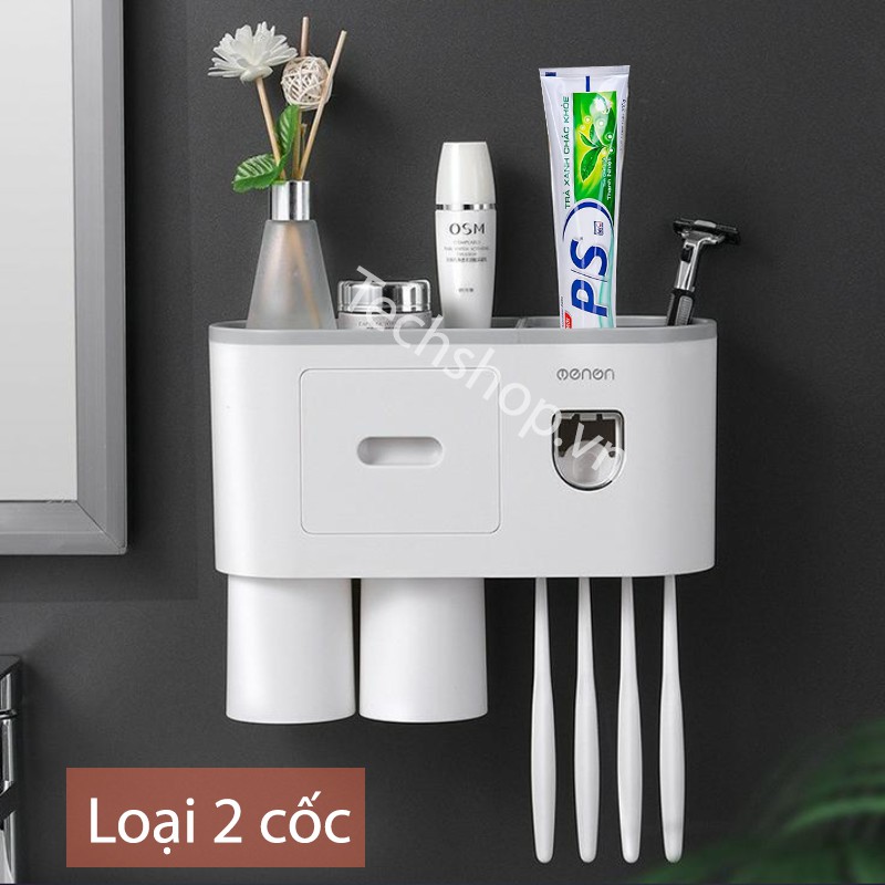 Kệ Nhà Tắm Nhả Kem Đựng Bàn Chải Đánh Răng Oenon Dán Tường Kèm Theo Cốc - Loại 2 cốc và 3 Cốc