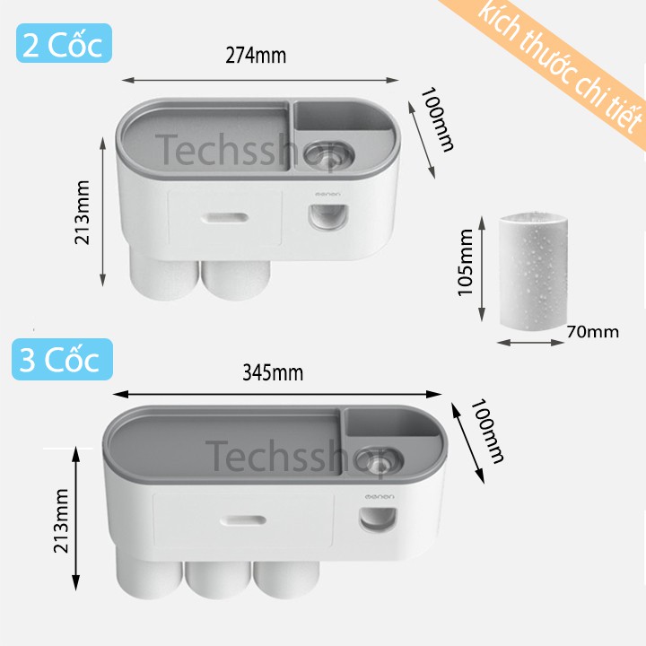 Kích thước loại 3 cốc: 345x100x213 mm (DxRxC)
