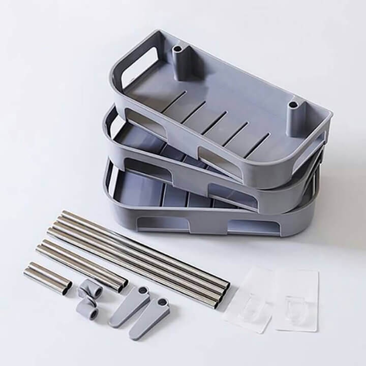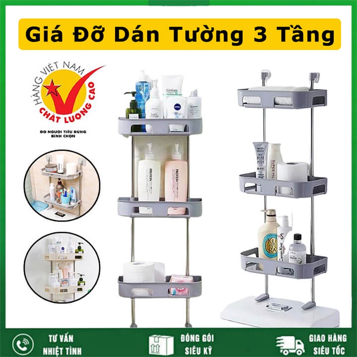 - Cùng với chất liệu nhựa cao cấp và thép không gỉ; kệ nhà tắm 3 tầng thiết kế thuận tiện cho việc lắp ráp dễ dàng mà vẫn chắc chắn và chịu lực tốt
