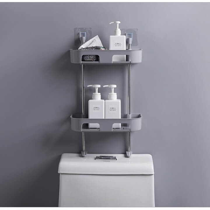 Kệ nhà tắm thông minh dán tường 2 tầng, kệ 2 tầng đa năng để trên bồn cầu nhà vệ sinh Toilet, kệ để gia vị nhà bếp