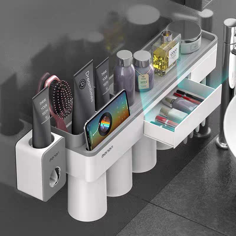 * Tiện Ích Sản Phẩm: Kệ Nhà Tắm Thông Minh OENON Kèm Cốc, Bộ nhả kem đánh răng tự động