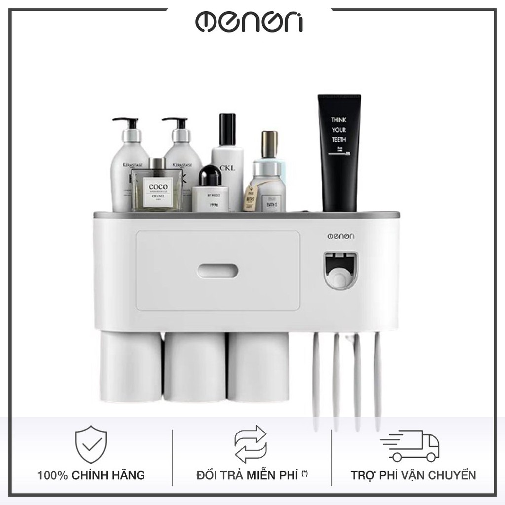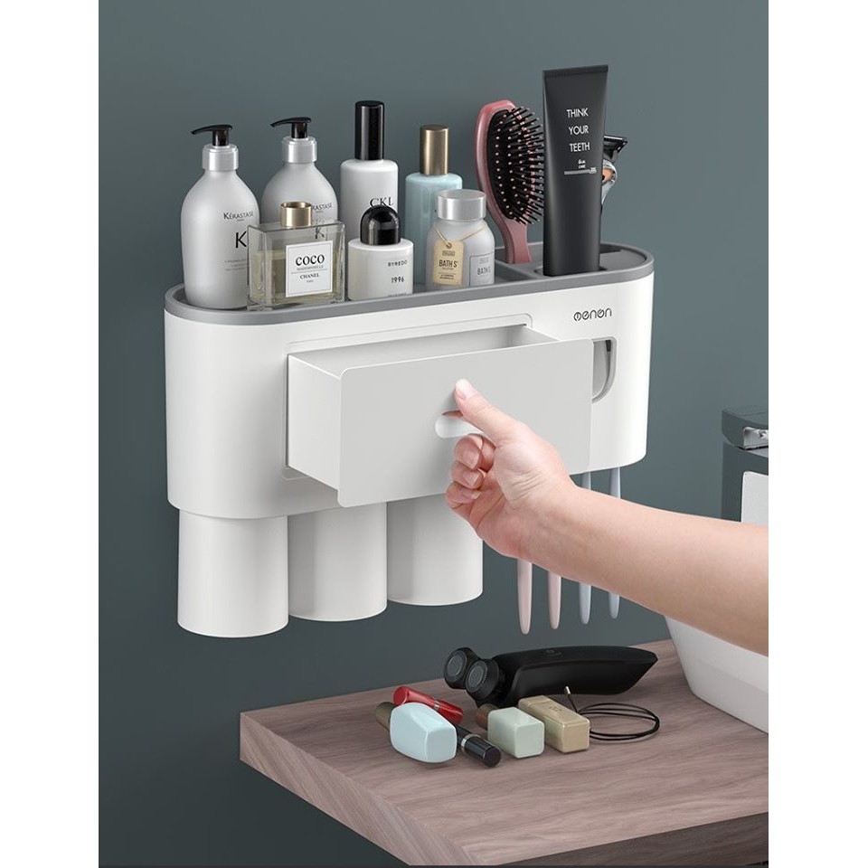 Kệ Nhà Tắm Thông Minh Oenon Bóp Kem Tự Động Kèm 3 Cốc Từ Tính, Kệ Dính Tường Để Đồ Phòng Tắm Tiện Ich