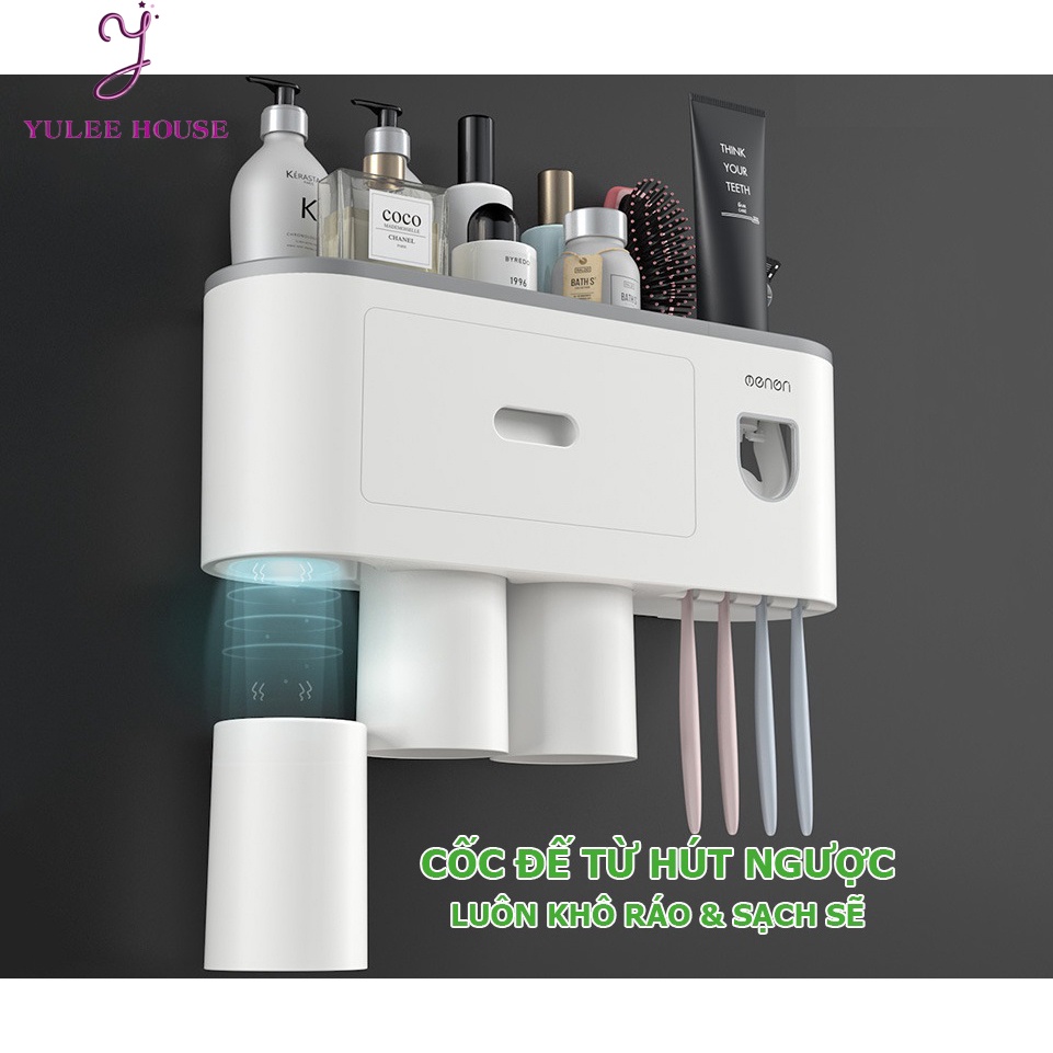 - Cốc đánh răng, súc miệng treo lên kệ bằng sức hút nam châm từ tính giúp cốc gọn gàng. Do đó, cốc sẽ luôn được giữ khô ráo và sạch sẽ (do được dốc ngược khi treo)