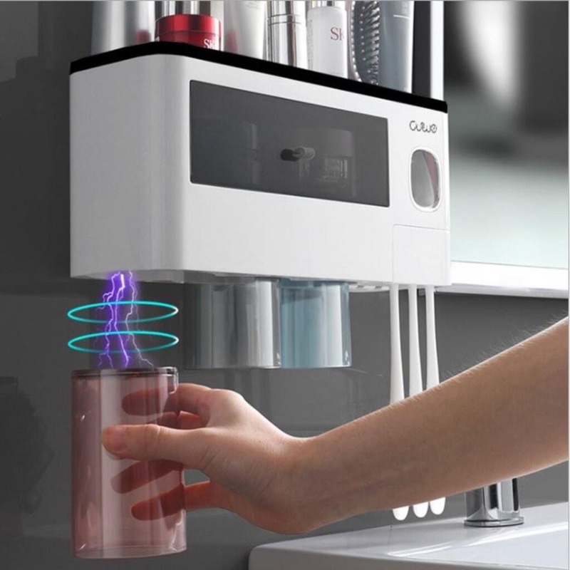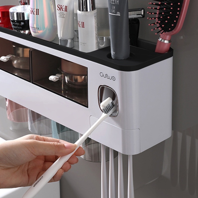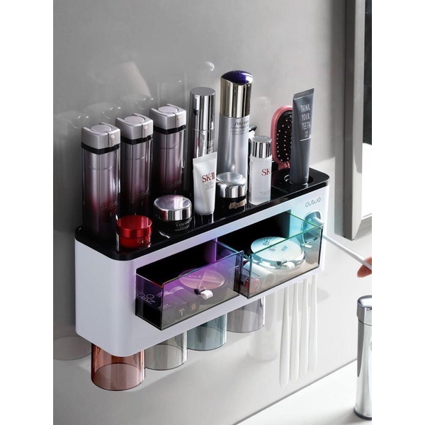 - Sản phẩm gồm: 1 Kệ nhà tắm tích hợp chức năng lấy kem tự động + Cốc hút từ tính ( loại 2/3/4 cốc) + miếng dán tường