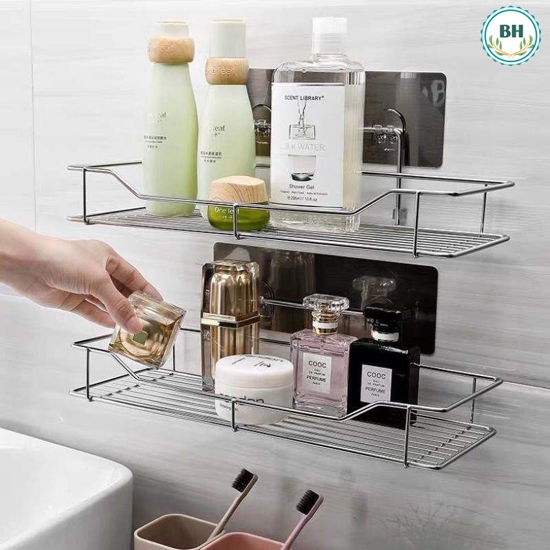 Kệ Nhà Tắm Treo Tường Inox Để Đồ Nhà Tắm, Giá Để Đồ Phòng Tắm Dán Tường Không Cần Khoan Có Miếng Dính Siêu Chắc Đi Kèm