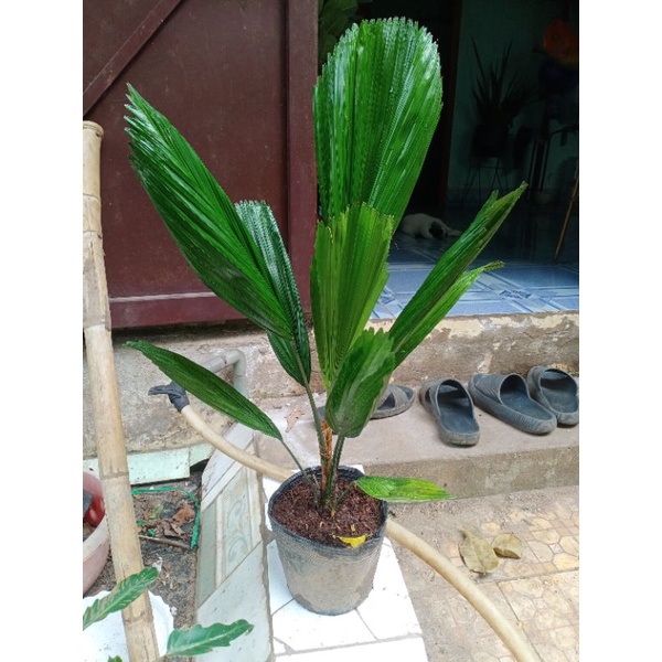 Cây kè nhật (cọ nhật) là loại được yêu thích chưng nội thất. thân cây ko có. gai, lá xòe tròn.