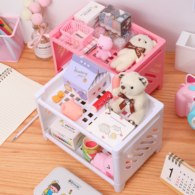Kệ nhựa 2 tầng đa năng decor bàn học, đựng đồ dùng học tập, mỹ phẩm