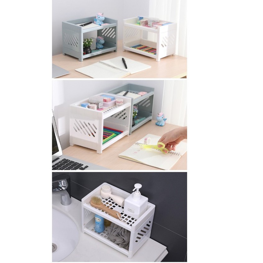 Kệ nhựa 2 tầng đa năng decor bàn học, đựng đồ dùng học tập, mỹ phẩmKệ 2 tầng dùng đựng đồ dùng học tập, mỹ phẩm, kệ bếp, kệ nhà tắm