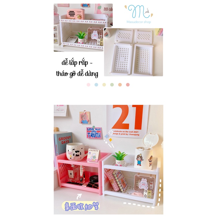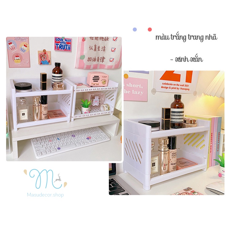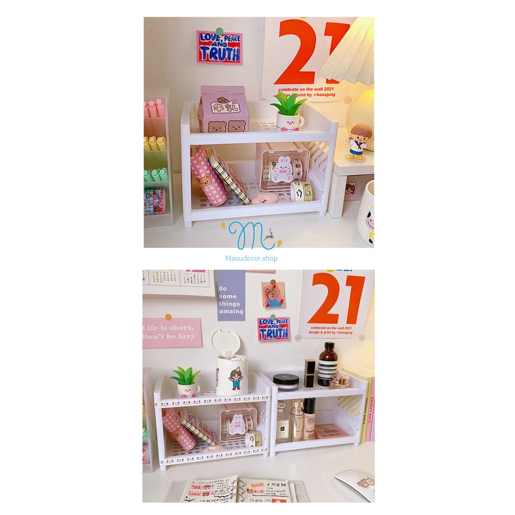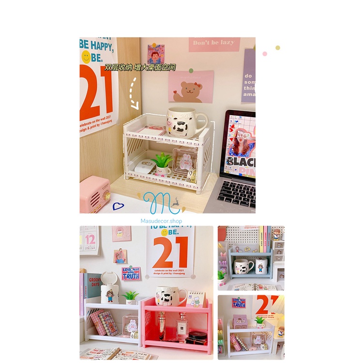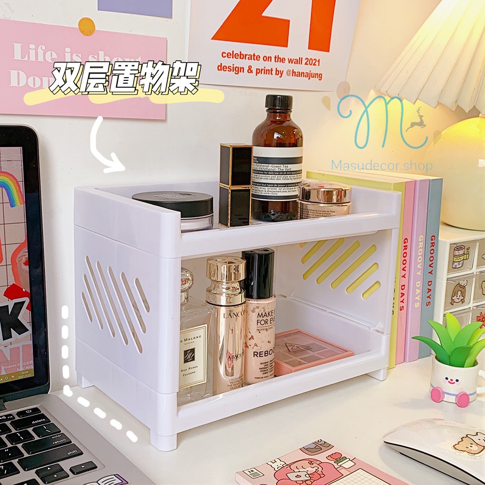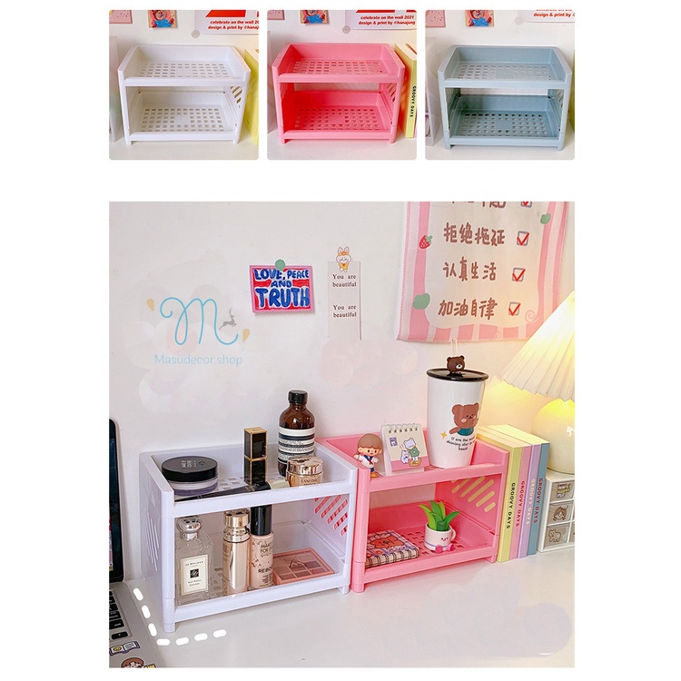 Kệ nhựa 2 tầng mini đựng đồ gọn nhẹ dùng decor bàn học, phòng bếp