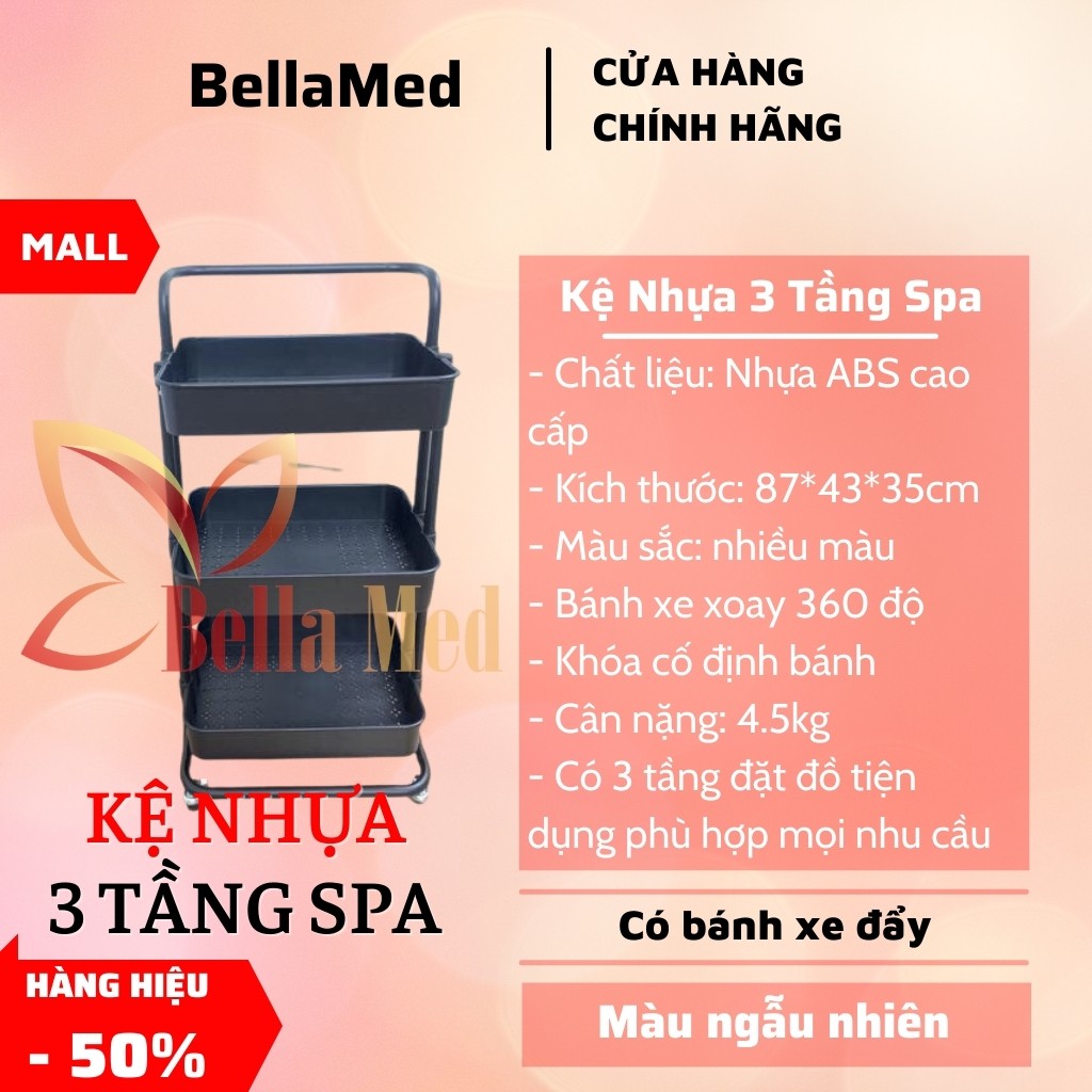 kệ nhựa 3 tầng có bánh xe đẩy dùng trong spa, phun xăm, thẩm mỹ viện📣 Sản phẩm được cung cấp bởi Bellamed