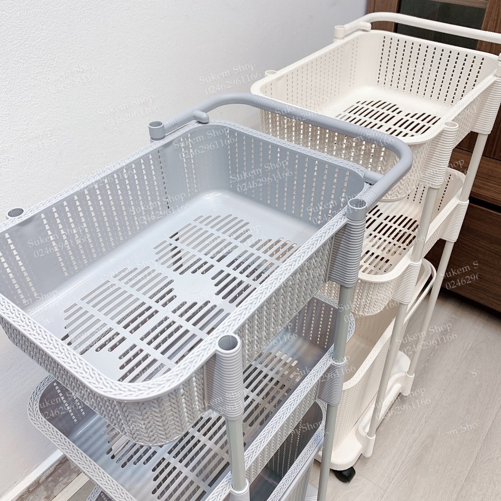 💓 Giỏ đựng đồ tầng dưới có thể tách ra để dùng độc lập rất dễ dàng, có quai xách tiện lợi.