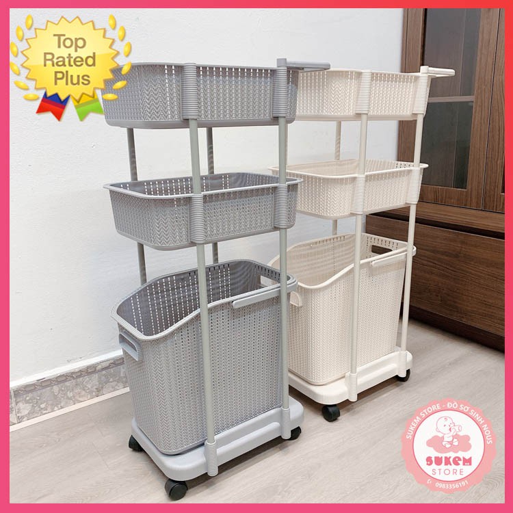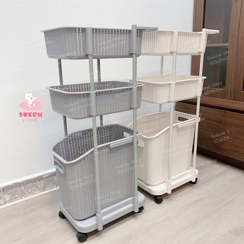 ✔️ “Kệ đựng đồ 3 tầng có bánh xe” giúp mẹ để : đồ chơi, quần áo , tã hay khăn của con thay ra trong ngày thì chỉ cần 1 động tác nhấc giỏ đi giặt là xong ngay mẹ nhé!