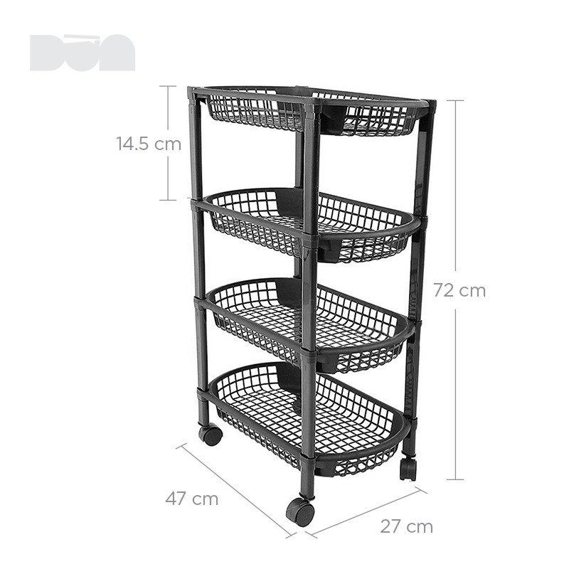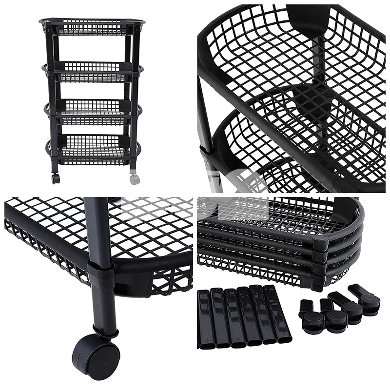 Kệ nhựa 4 tầng đa năng có bánh xe, đựng gia vị, thực phẩm đồ dùng nhà bếp, giá để đồ nhà tắm, phòng ngủ, màu đen- TS5319