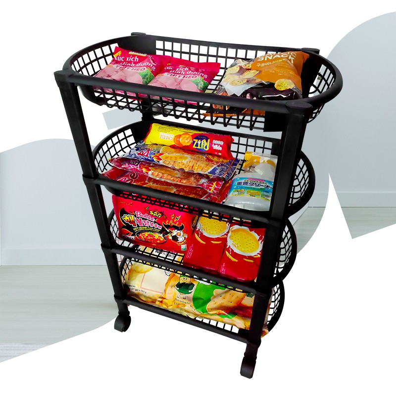 Chào mừng các bạn đến với trang bán hàng của Nhasachngoncom.vnDừa lại tiếp tục với một mẫu kệ dùng trong nhà của Tashuan, sản phẩm kệ (rổ) 4 tầng có bánh xe. Dừa nhấn mạnh chữ rổ ở đây để các bạn dễ hình dung mình có thể để được gì trong đó. Tụi mình minh họa kỹ lưỡng trên hình rồi, vì kết cấu đan như lòng rổ nên không chịu lực được, chỉ để mấy đồ nhẹ nhẹ thôi. Tiện ở chỗ là có bánh xe mình đẩy tới đẩy lui được. Tầng mình để bánh tráng, tầng mình để bim bim, đi đến đâu mình đẩy theo đến đó nè :))