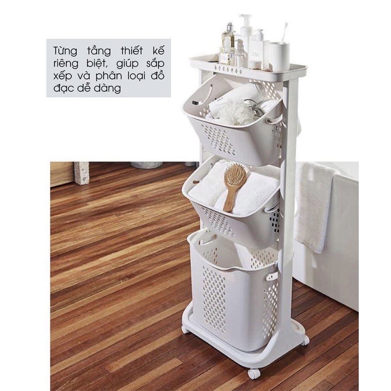 Kệ nhựa cao cấp 3 tầng đa năng có bánh xe đựng đồ cho bé, đồ nhà tắm, đồ máy giặt.