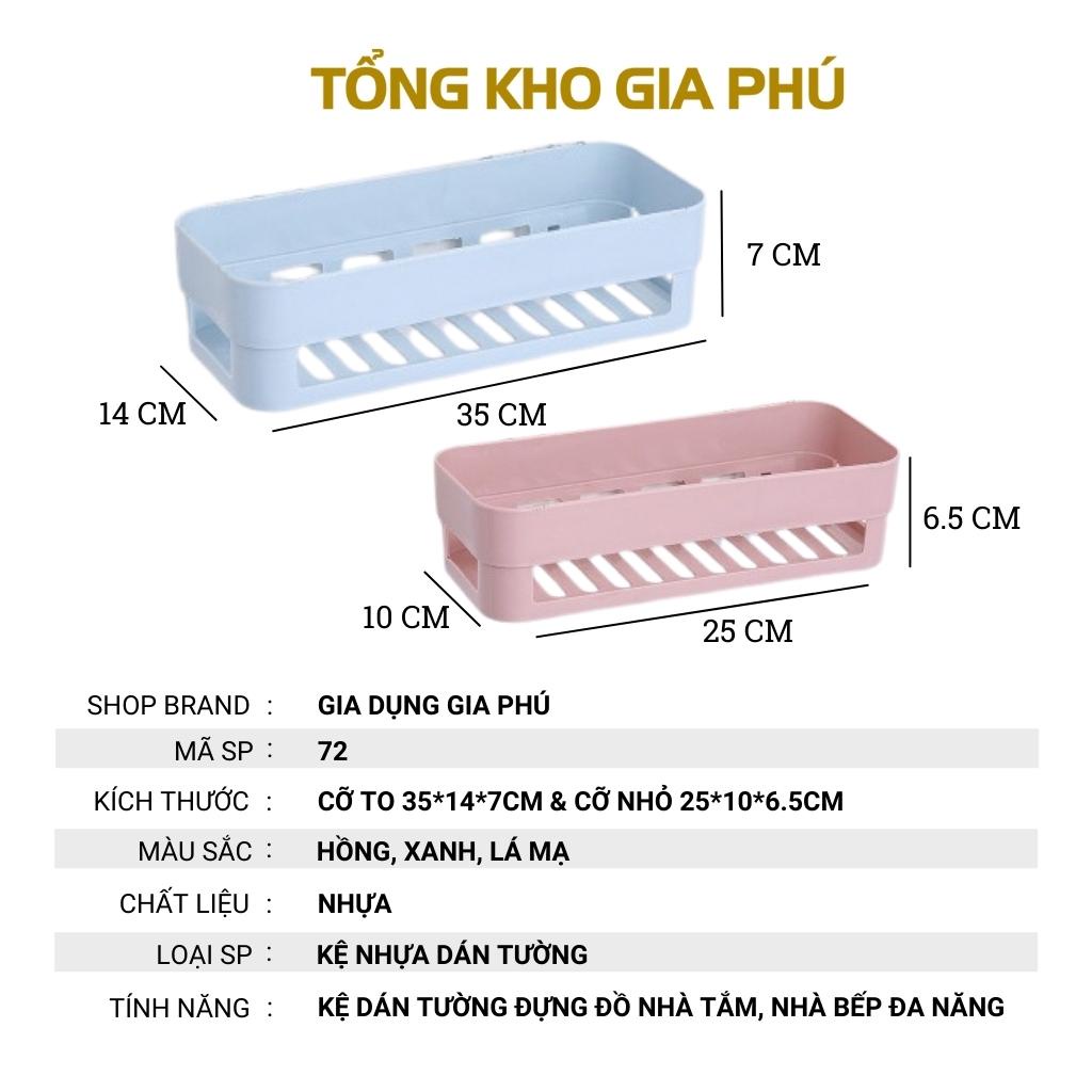 - Kích thước kệ dán tường loại to 35*14*7CM (loại này gôm 1 kệ + 2 nhựa đỡ + 1 miếng dán đôi dài)