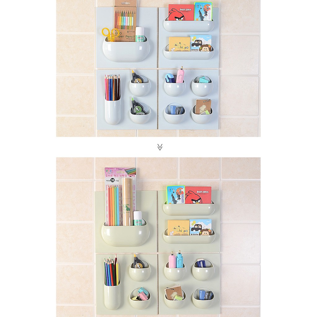 - Kệ dán tường nhiều ngăn giúp việc tìm kiếm các vật dụng cá nhân dễ dàng hơn