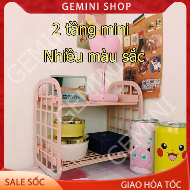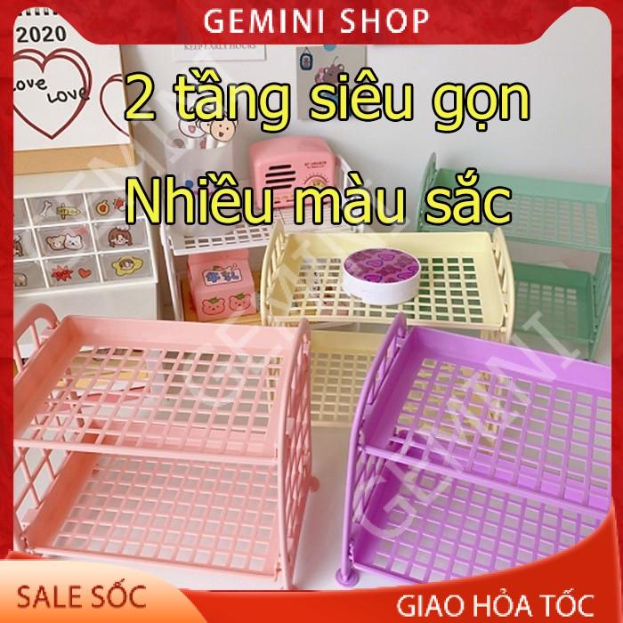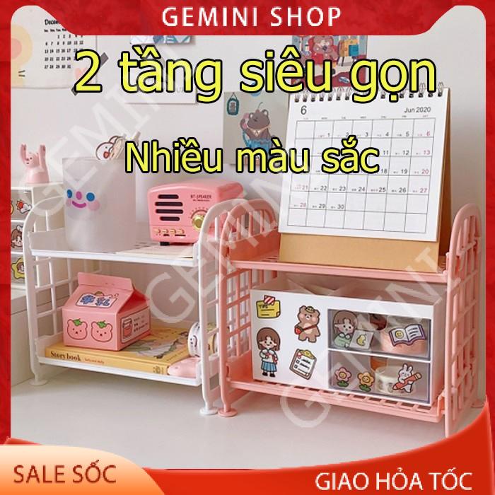 Kệ nhựa để đồ mini 2 tầng để đồ dùng học tập trang trí bàn học phong cách Hàn Quốc E050 GEMINI SHOP