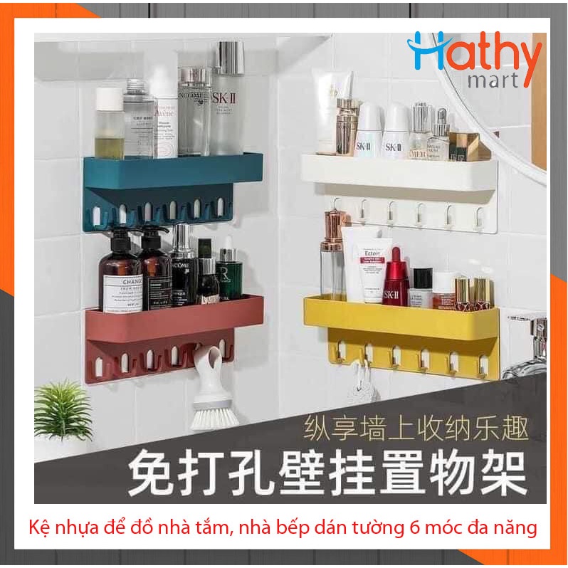 Kệ nhựa để đồ nhà tắm, nhà bếp dán tường 6 móc đa năng HH