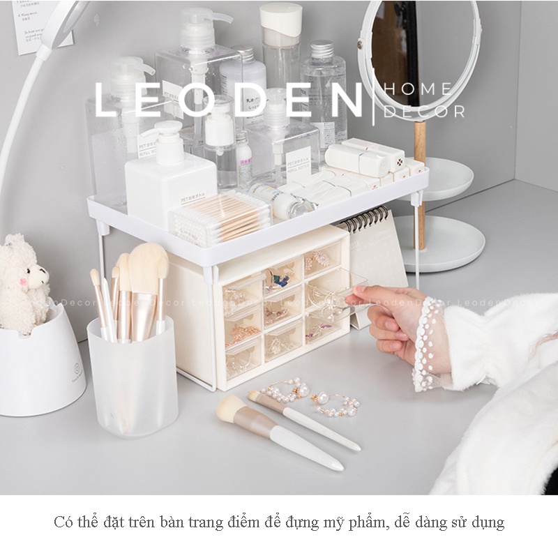 Kệ nhựa decor bàn học mini lắp ráp hai tầng, kệ xếp đồ đa năng trang trí phong cách Hàn Quốc - LEODEN Decor✅ CAM KẾT SẢN PHẨM: