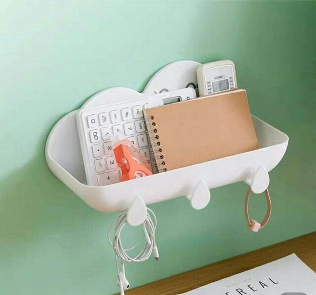 - KỆ ĐÁM MÂY DÁN TƯỜNG với ngăn chứa rộng rãi và 3 móc treo tiện lợi giúp bạn có thể đựng nhiều sản phẩm với kích thước khác nhau tiện dụng cho cả gia đình.