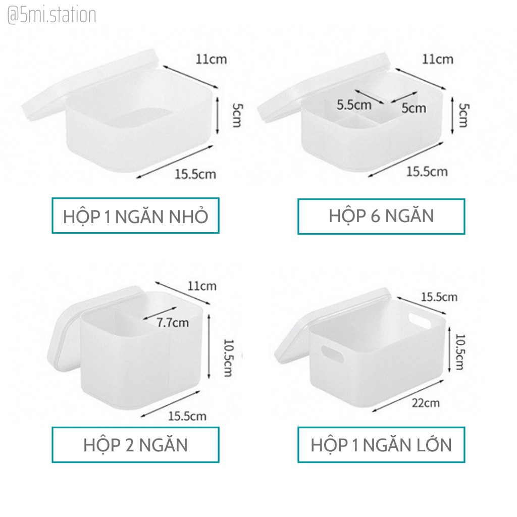 + Hộp 1 ngăn nhỏ: 15.5 x 11 x 5 cm