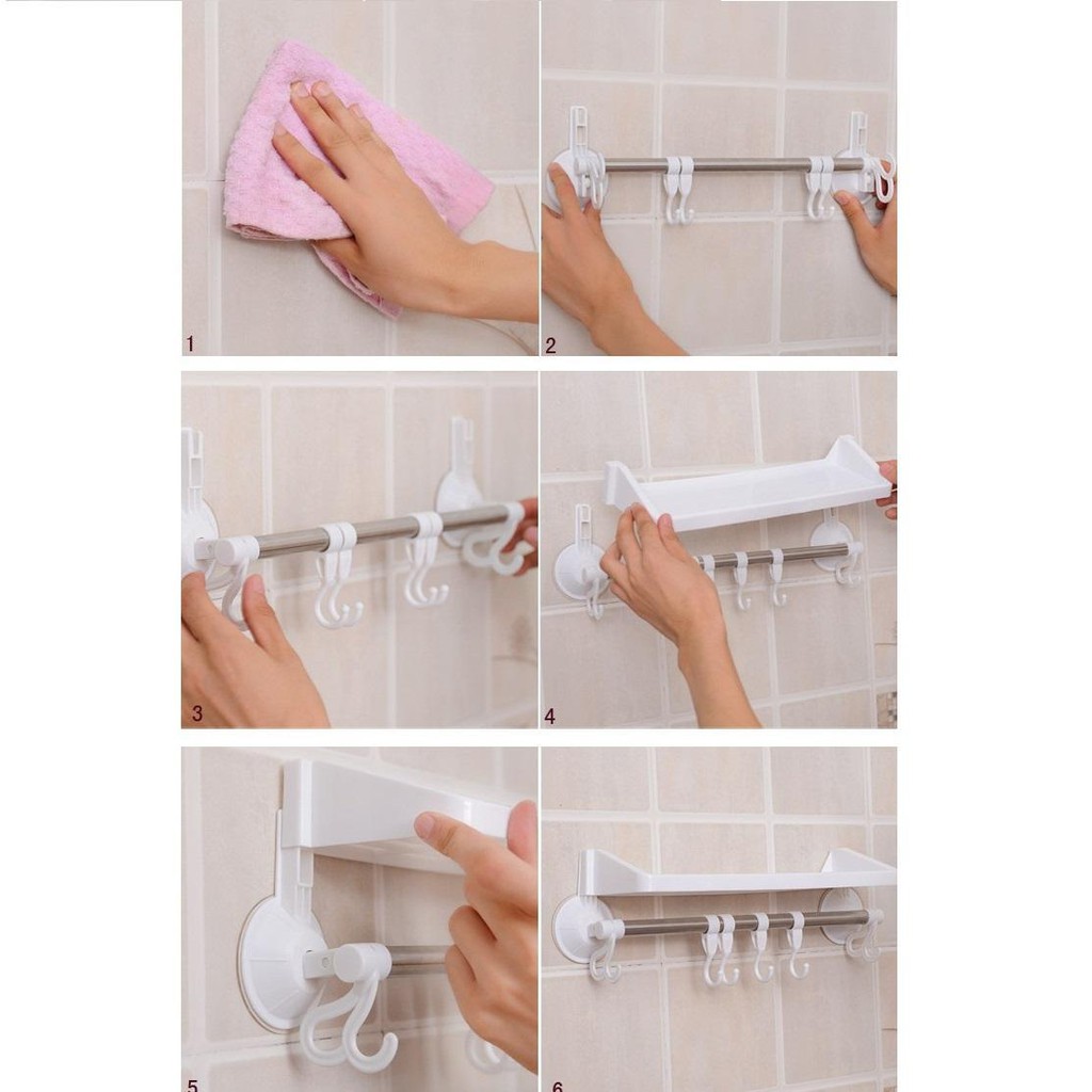 Giới thiệu Kệ nhựa Hít Tường Kèm Móc Treo Đồ Nhà Tắm Đa Năng