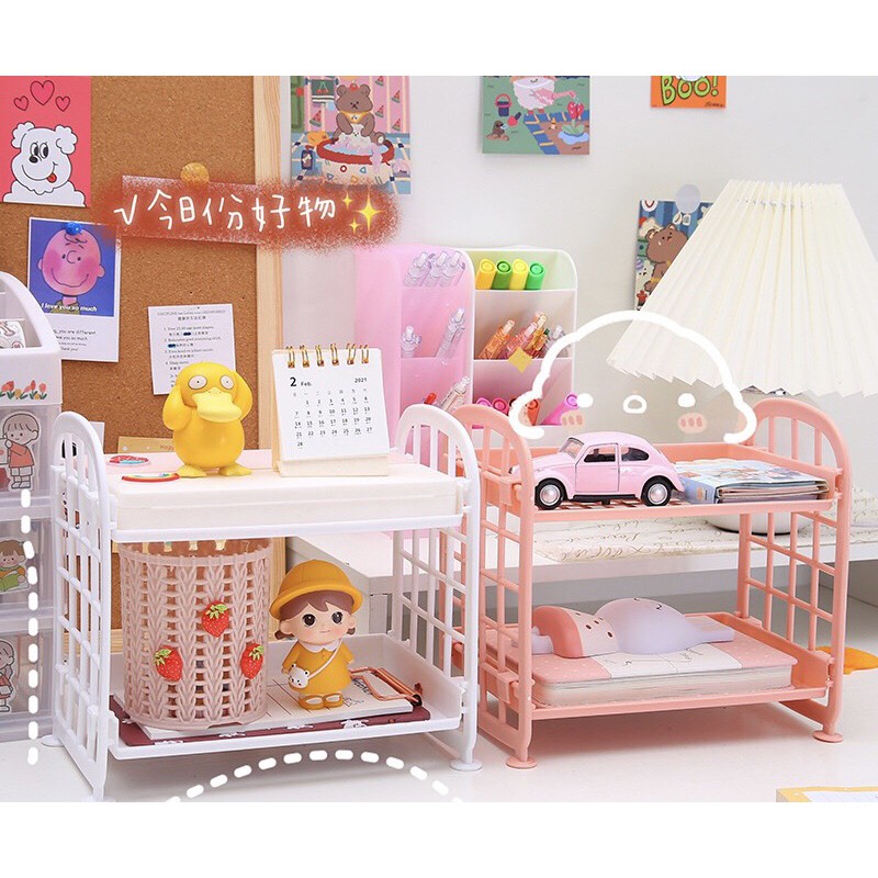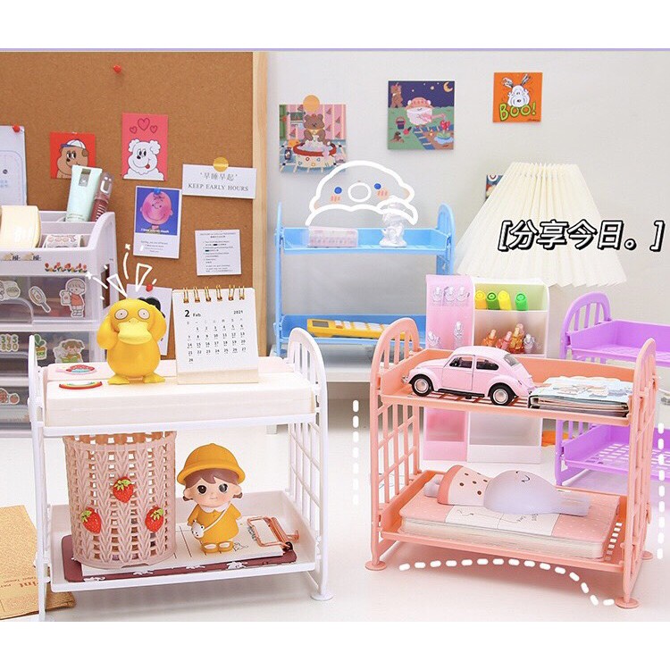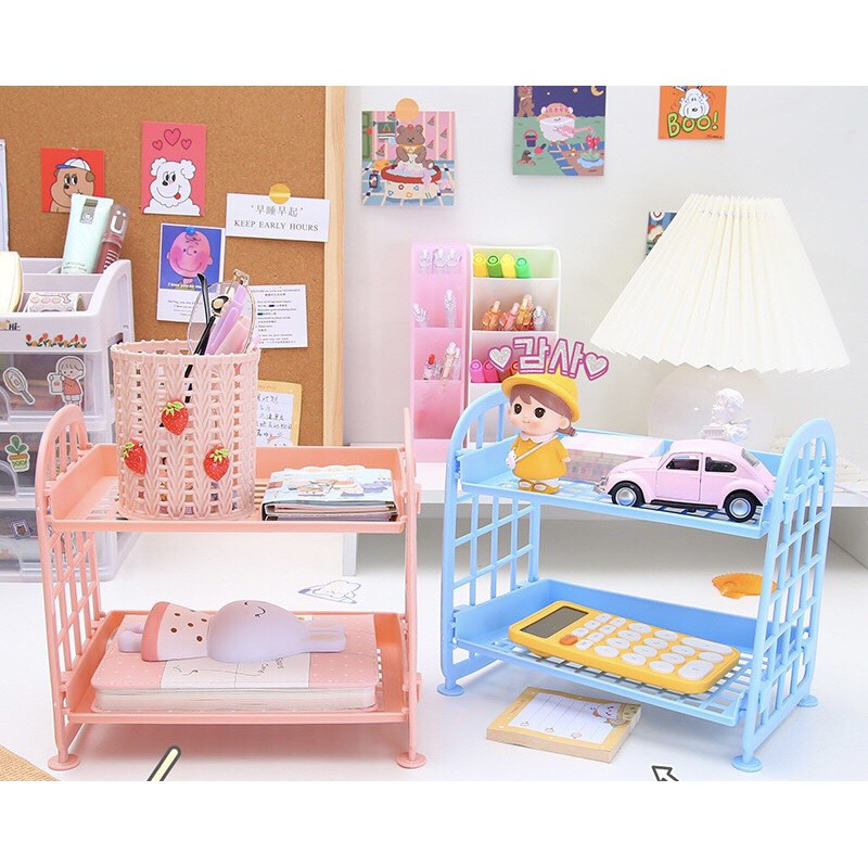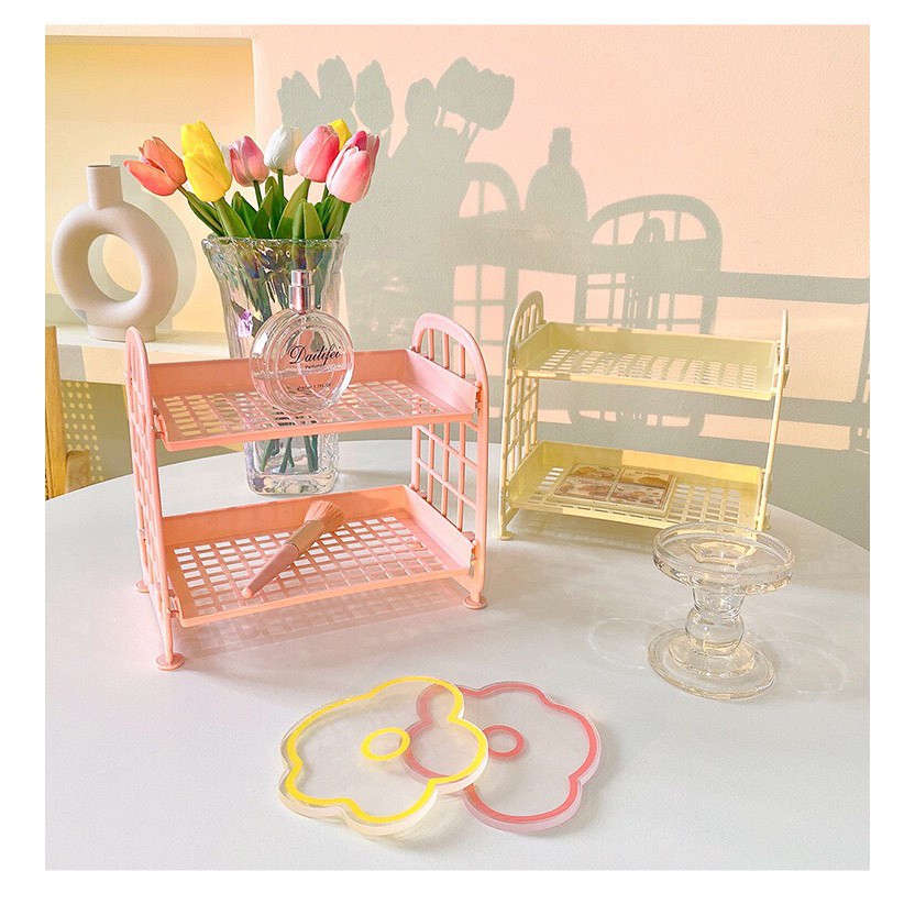 Kệ Nhựa Mini 2 Tầng Để Bàn Đựng Đồ Đa Năng Ulzzang