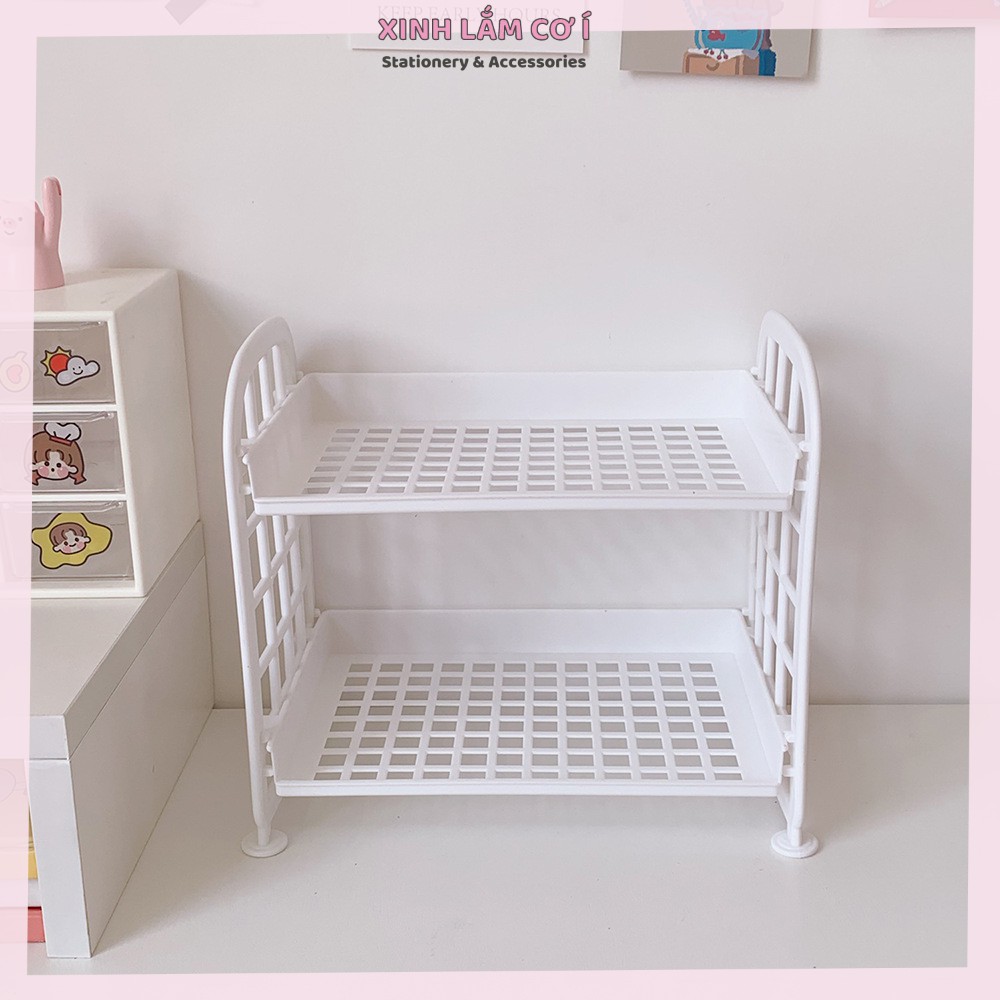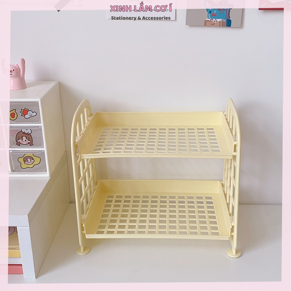 Kệ Nhựa Mini 2 Tầng Đựng Đồ Dùng Học Tập Trang Trí Bàn Học Phong Cách Hàn Quốc Siêu Dễ Thương [Xinh Lắm Cơ Í]