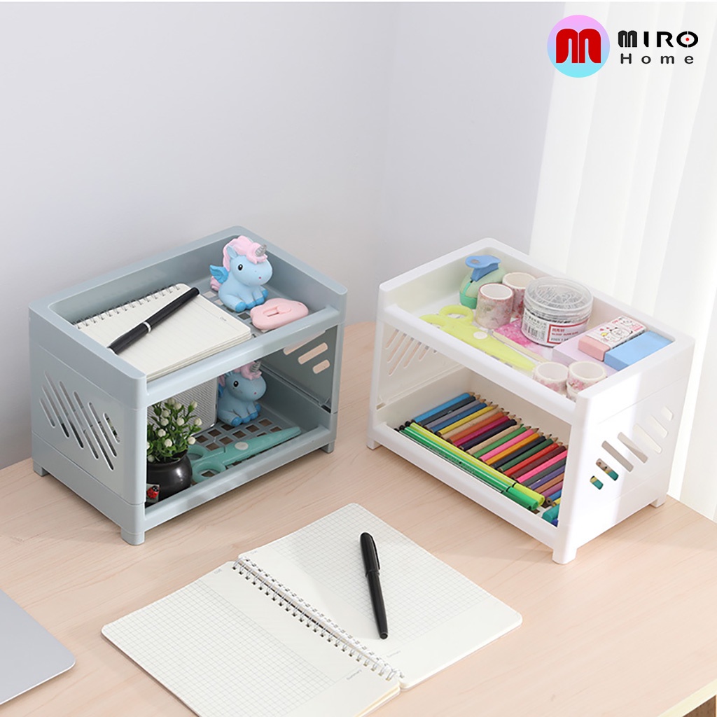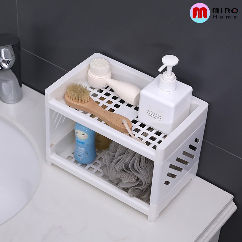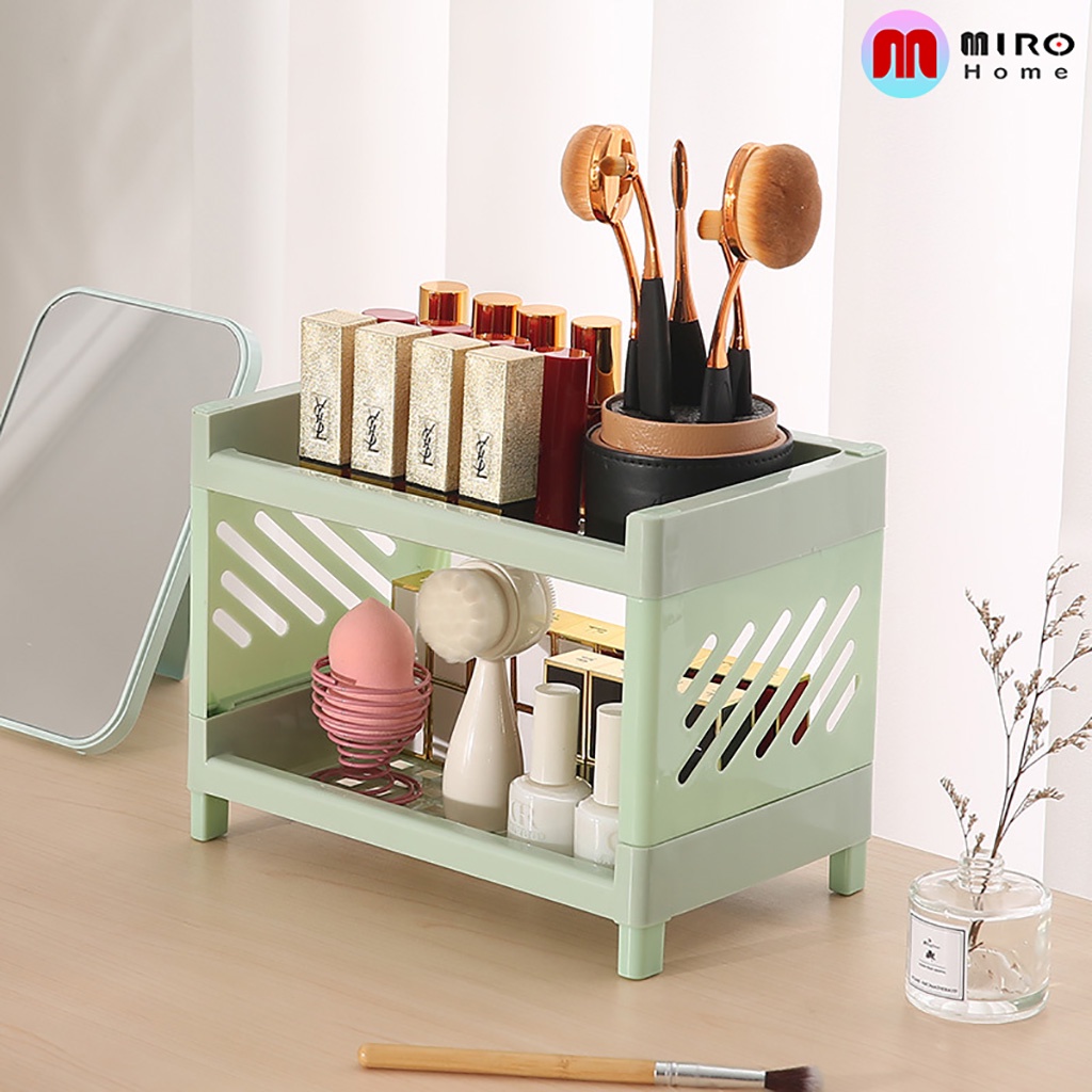 Kệ nhựa mini 2 tầng đựng mỹ phẩm, khay nhựa để đồ trang điểm, để đồ phòng tắm tiện lợi MIROHOME