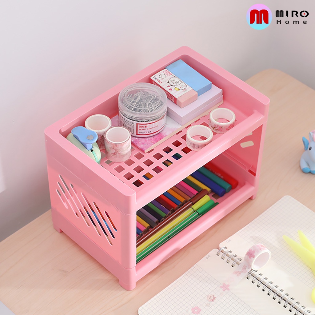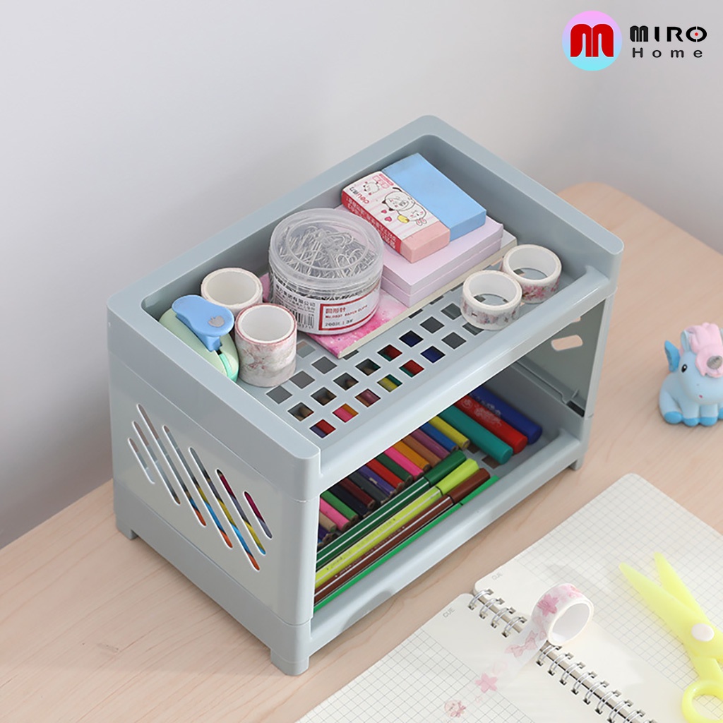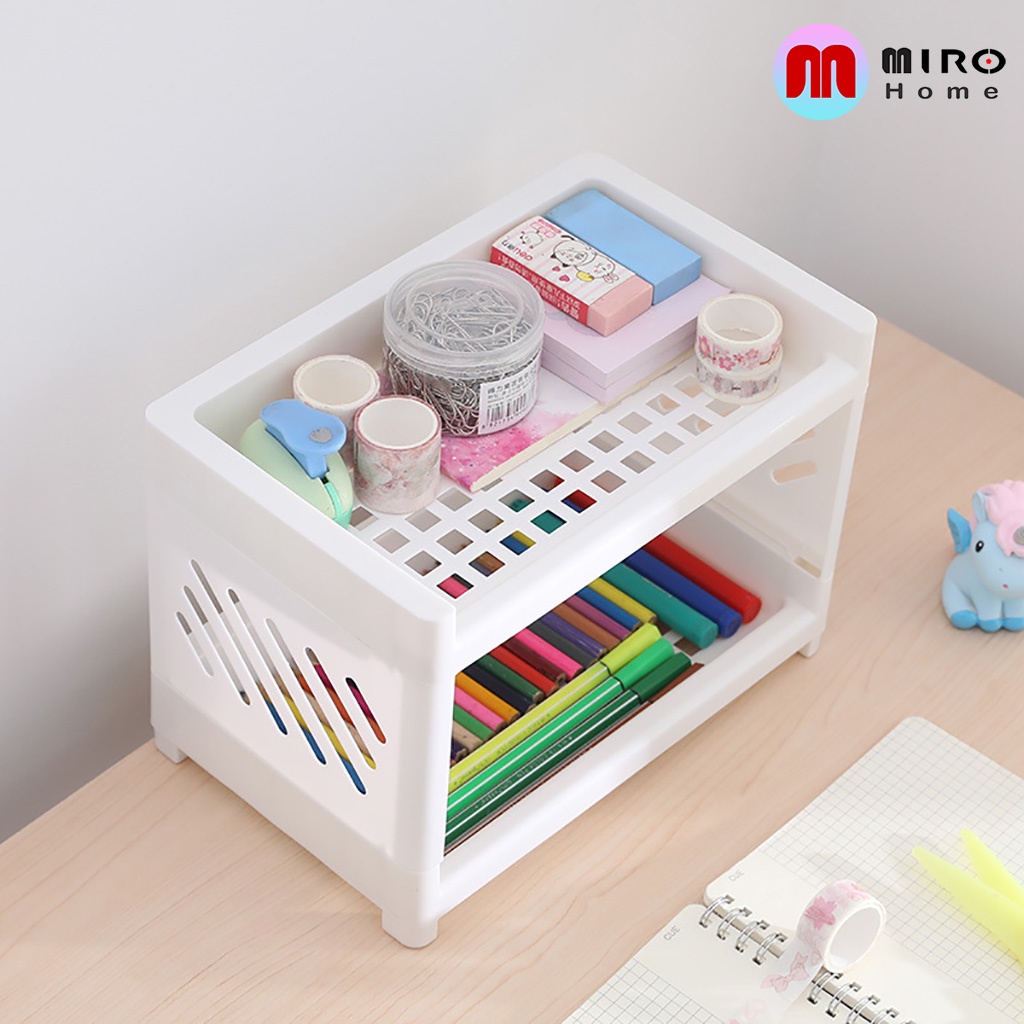 Kệ nhựa mini 2 tầng đựng mỹ phẩm, khay nhựa để đồ trang điểm, để đồ phòng tắm tiện lợi MIROHOME