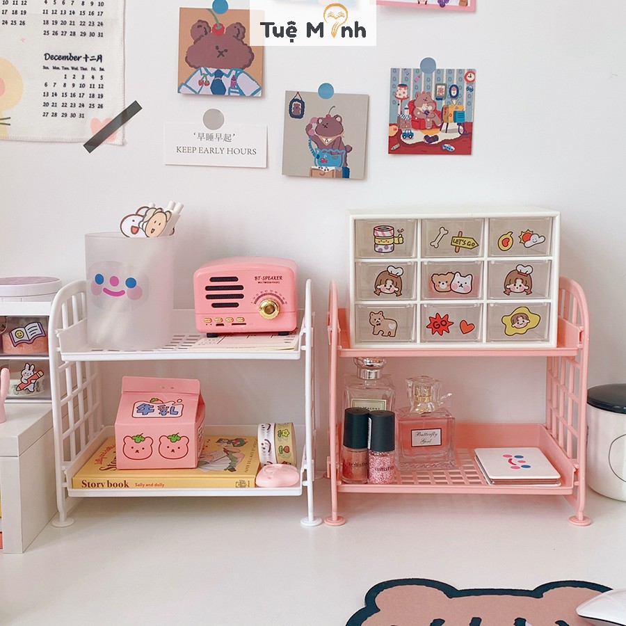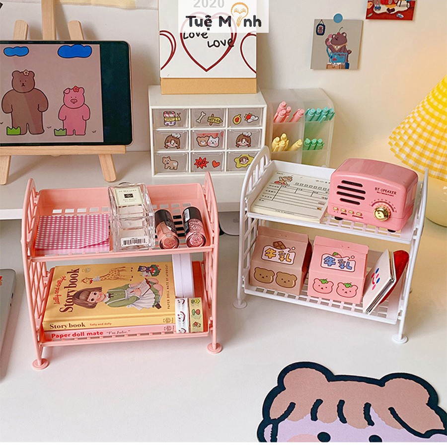 Kệ nhựa mini 2 tầng giá đựng sách, đồ dùng để bàn decor K20 xinh xắn
