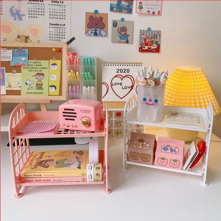 Kệ Nhựa Mini 2 Tầng Mini Đựng Đồ Đa Năng Siêu Xinh Sẵn Hàng