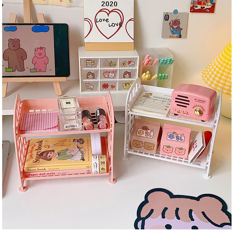KỆ NHỰA MINI ĐỂ BÀN 2 TẦNG ULZZANG - KỆ NHỰA TIỆN LỢI