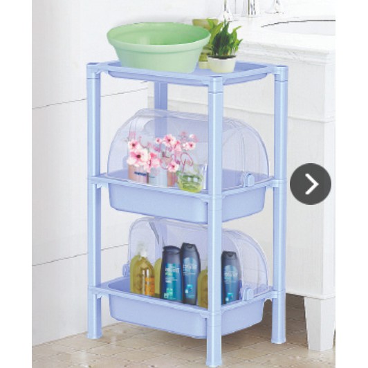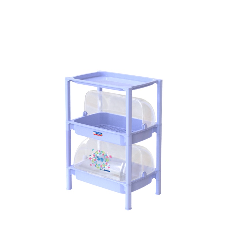 Kệ nhựa 2 ngăn có nắp đậy che chắn bụi và côn trùng rất tốt.