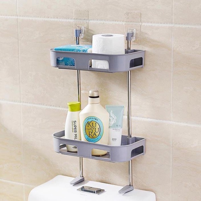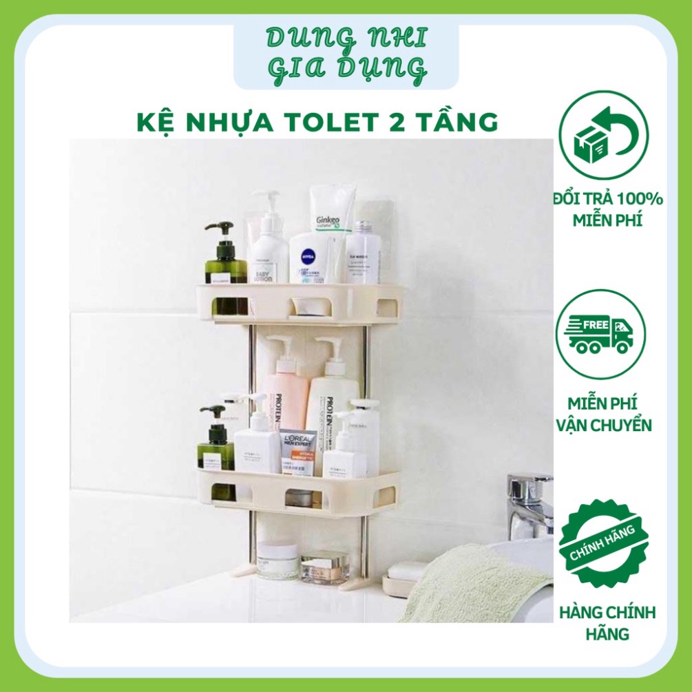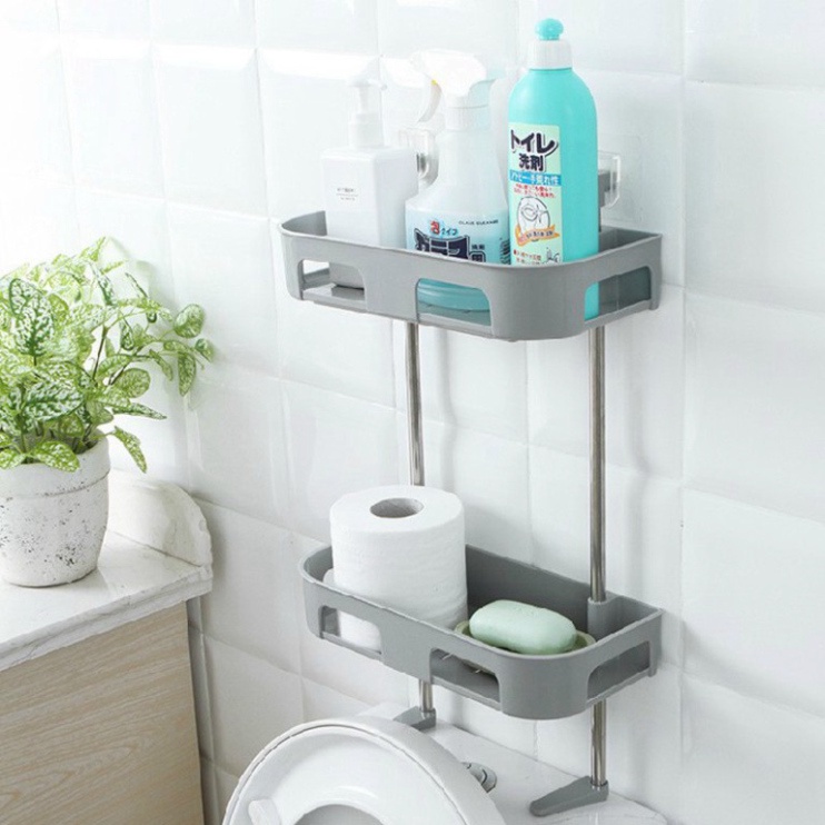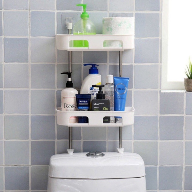Kệ Nhựa Toilet 2 Tầng Đa Năng Siêu Tiện Lợi Kệ Nhựa Để Đồ Có Móc Dán Tường Đi Kèm Gia Dụng