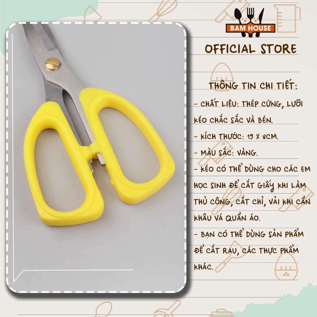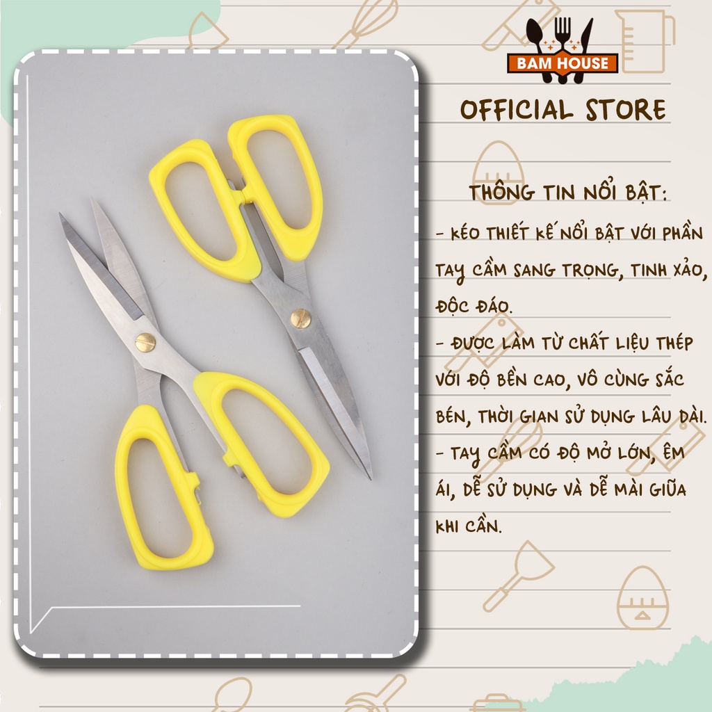 Nhà cửa & Đời sống > Bộ đồ bàn ăn > Bộ dao kéo || Kéo bếp mũi nhọn inox Bam House cán vàng lưỡi kéo dài cao cấp KCV07 - Gia dụng bếpCòn hàng