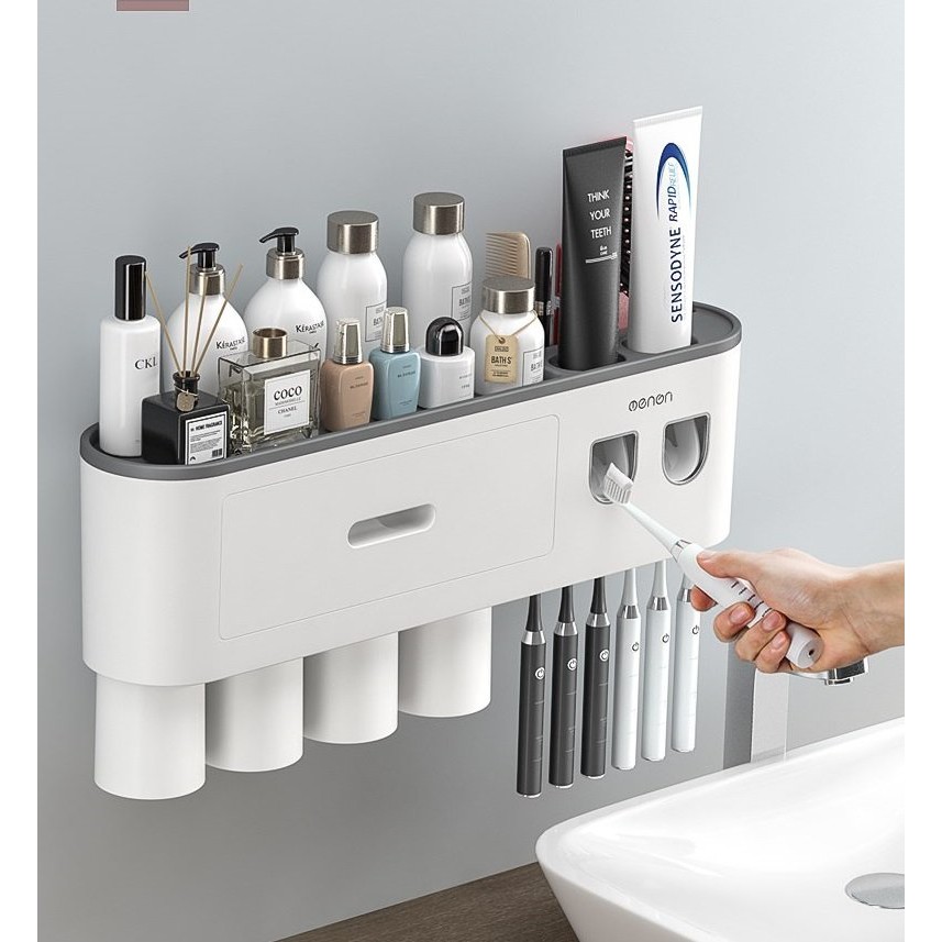 Nhà Cửa & Đời Sống > Đồ dùng phòng tắm > Kệ để đồ phòng tắm || Kệ OENON có 2 Nhả Kem Đánh Răng Tự Động kèm cốc hút từ tính - Giá để đồ nhà tắm OENON - 2NHAKEMCòn hàng