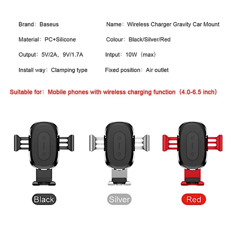 Giới thiệu Kẹp cửa gió kèm sạc không dây trên xe hơi BASEUS Gravity Car Mount
