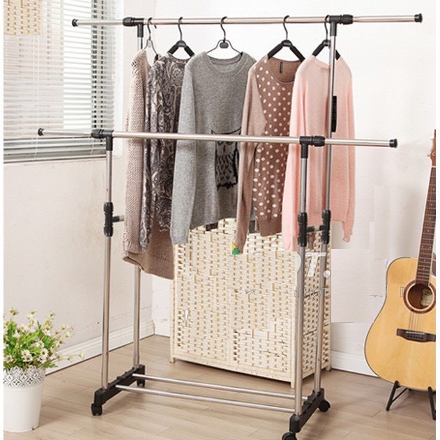 Kệ phơi quần áo đa năng 2 tầng inox di động