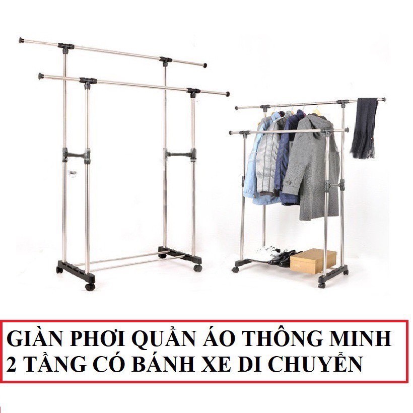 Nhà cửa & Đời sống > Dụng cụ chăm sóc nhà cửa > Dây phơi & giá phơi quần áo || Kệ phơi quần áo đa năng 2 tầng inox di độngCòn hàng