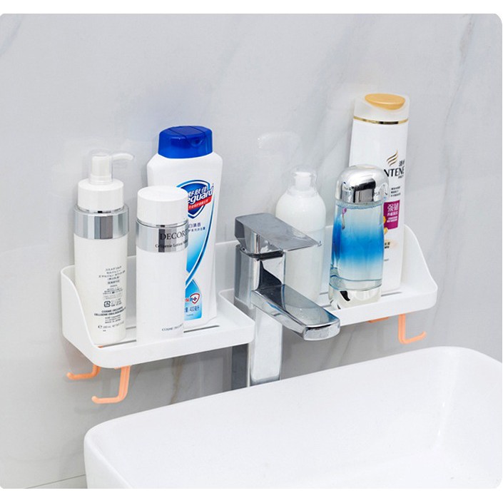 Giá kệ nhà tắm, phòng bếp tiện ích làm bằng nhựa , độ bền cao, thiết kế độc đáo với 2 ngăn 1 khe hở ở giữa vừa giúp bạn sắp xếp gọn gàng các vật dụng, vừa giúp bạn tiết kiệm không gian, là sản phẩm tiện dụng được rất nhiều các gia đình yêu thích . Dưới kệ cũng có khe thoát nước và móc treo đồ đi kèm.