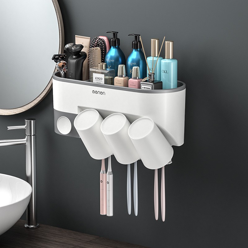 Kệ Phòng Tắm OENON,Giá Treo Bàn Chải Kem Đánh Răng Kèm 3 Cốc Dán Tường - OE041