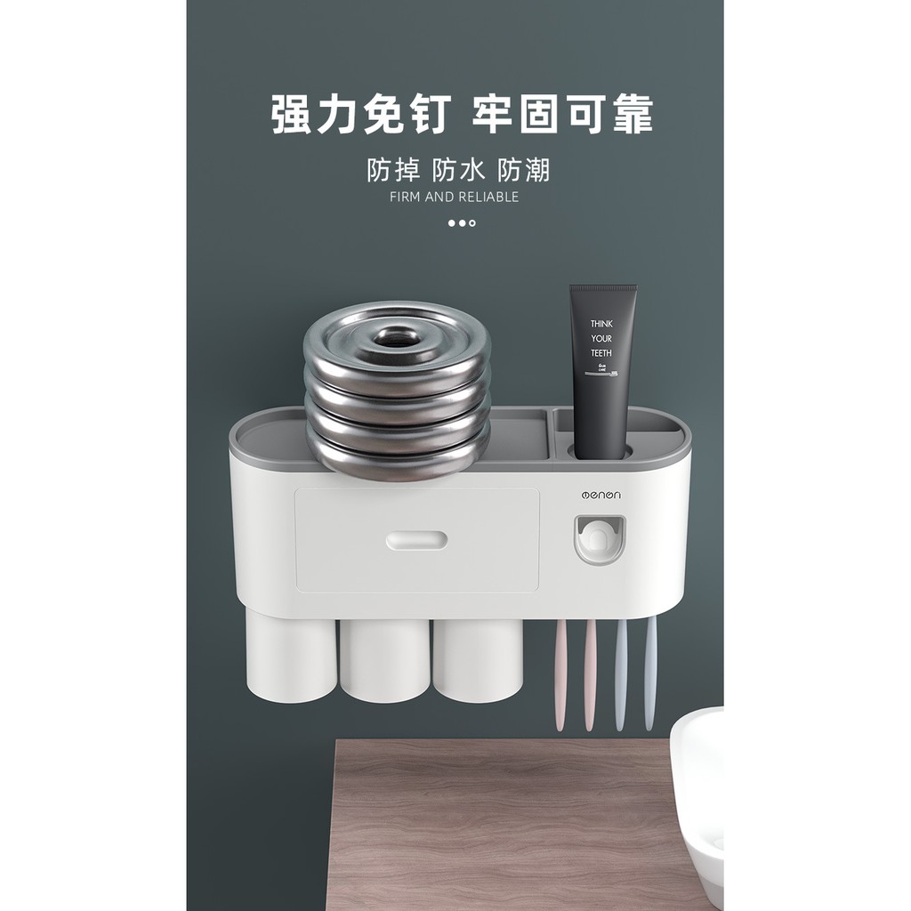 Kệ phòng tắm thông minh đa năng Giá để bàn chải nhả kem tặng kèm 3 cốc hút từ tính