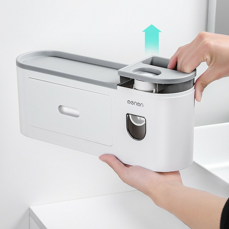 Kệ Phòng Tắm Thông Minh Gồm Cốc Hút Từ Tính Có Nhả Kem Tự Động, Lắp Đặt Không Khoan Tường (Tặng kèm miếng dán)